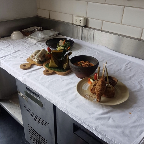 筆者が参加した際には、写真のシェフと一緒に全4品作りました。クッキングクラスで作ったお料理は、後ほど美しくテーブルセッティングされたレストランにて頂けます。