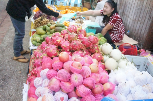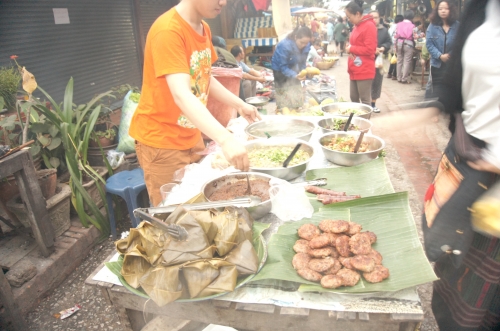 托鉢が終わると、朝市が寺院の前や通りに並び始めます。地元の方の声が飛びかう朝市は活気に満ち溢れています。店先に並ぶのは新鮮な果物・野菜、締めたての肉、獲れたての魚。ここに暮らす人たちの冷蔵庫の中身をのぞいているようで、ナイトマーケットとは違った面白さがあります。