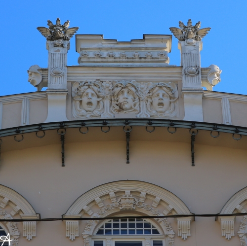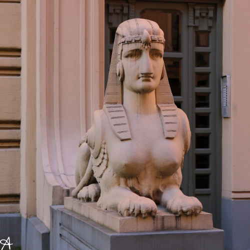 約300mのアルベルタ通りに並ぶほとんどの建物がアールヌーボー建築です。ロボットのような顔、叫んでいるような顔、何かを悟ったかのような顔・・・スフィンクスのような石像もあります。