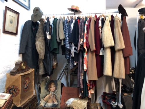 ヘビーウェイトウールやカシミアのチェスターフィールドコート、ツイードのハッキングジャケット、柔らかいフェルトのソフト帽子のトリルビーなどが店頭に並び、これぞ「イギリスのヴィンテージ古着」という雰囲気を感じる、素敵なお店です。メンズアイテムが大半を占めますが、レディースアイテムもいくつかあります。