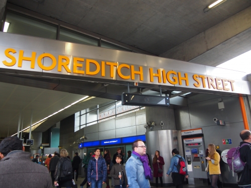 オーバーグラウンドのショーディッチ・ハイストリート駅東出口を出るとまず、目の前に見える黒いコンテナで出来た「BOXPARK」というショッピングモール。本当に、コンテナを積み上げただけのお店が並んでいるのです!