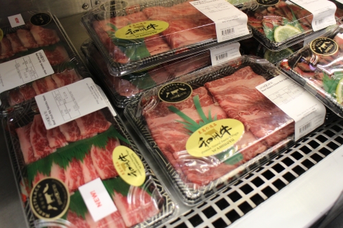 「デパ地下」のコンセプトのもと日本のお茶碗や台所用品などや本といった身の回りの品からお弁当や日本酒、生鮮食品に至るまで取り扱っています。特に、普段現地のスーパーでは手に入らない、駐在員にとっては嬉しい薄切り肉も販売されています(200g/23英ポンド=約3,300円)。