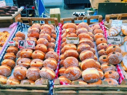 マーケット内にはたくさんのフードスタンドがあります。軽食を買うのも良し、昼食を取るのも良し。