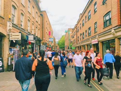 リバプールストリート駅から徒歩およそ5分の位置にあるOld Spitalfields Market。月曜日と火曜日は通常の露店が立ち並び、水曜日は本とレコード、木曜日はアンティーク、金曜日はファッションとアート、土曜日はファッション、家具、アクセサリーなど幅広いヴィンテージをメインに展開され、さらに日曜日は一番規模が大きく、グルメも楽しめます。
