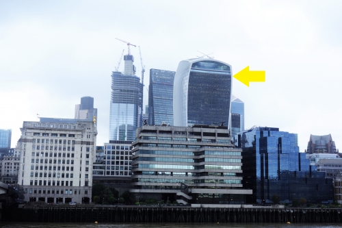 その名の通り20 Fenchurch Streetにある高層ビルで、愛称が「ウォーキー・トーキー(Walkie Talkie)=トランシーバー」。ロンドンでは、建物に愛称がつくようで、この愛称もその形からです。