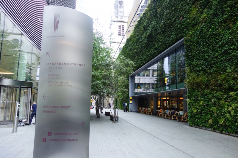 このビルの最上階の3フロアに、市民の憩いの場として作られたのがスカイ・ガーデン。3フロアには、レストランやカフェ、展望台があり、天井までガラス張りの開放的な空間に加え、緑でいっぱいの癒される空間でもあります。予約さえすれば無料で一般の方も入れます。