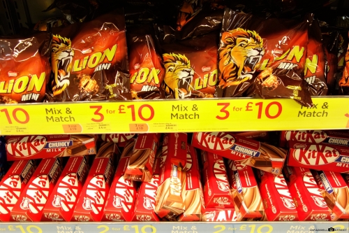 同じくコンビニの「WHSmith」も大小様々ですが5店舗あり、便利な存在。軽食やドリンク類はもちろん、お土産用のお菓子類も取り扱っています。しかも、3個で£10.00(1,830円)などのまとめ買いセールも行われているので、要チェックです。下手すると、市内のスーパーよりお得な場合も。こちらは、Bootsよりも早い朝5:30からラストフライトまでオープンしています(第5ターミナルのみ)。