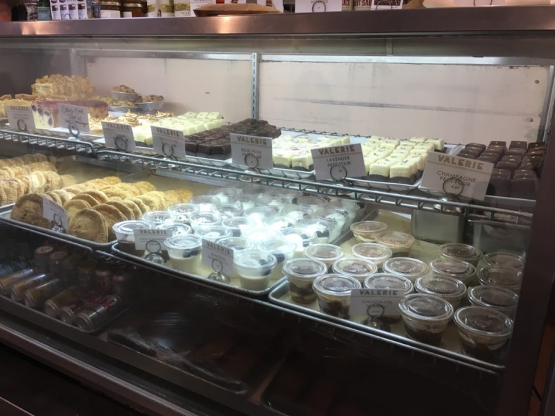 最後にデザートのお店をご紹介。こちらはコーヒーやサンドイッチをだす朝食メインのお店で、横のショーケースでスイーツも売っています。