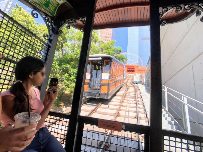 続いて訪れたいのが、グランドセントラルマーケットの通り向かいにある「エンジェルス・フライト・レールウェイ(Angels Flight Railway)」。ブラッドベリー・ビルディングからは再度グランドセントラルマーケットの中を抜けて向かう形となります。