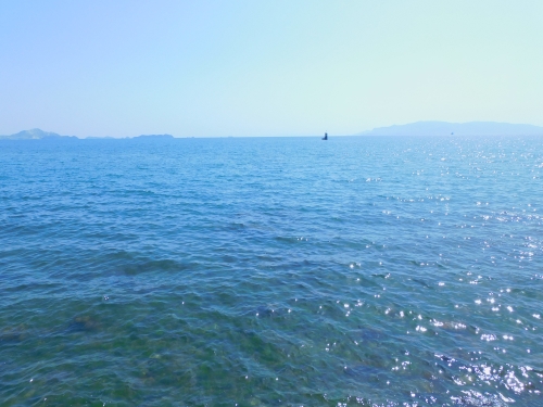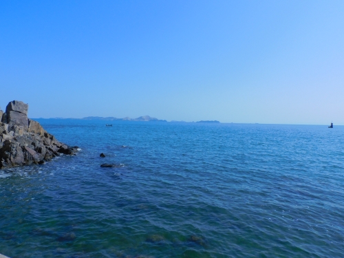 きらきら坂の最終地点、瀬戸内海に浮かぶ「畳岩」へは干潮時に渡ることが出来ます。