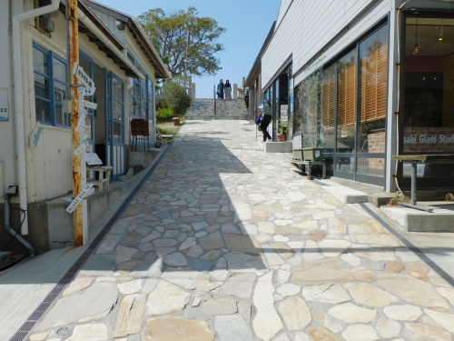 「伊和都比売神社」から海岸へと降る坂道で、周辺にはおしゃれなカフェや雑貨屋さんが並んでおり、最近では写真映えするスポットとして人気を集めています。夕日の名所としても知られており「日本の夕日百選」にも選ばれているスポットです。