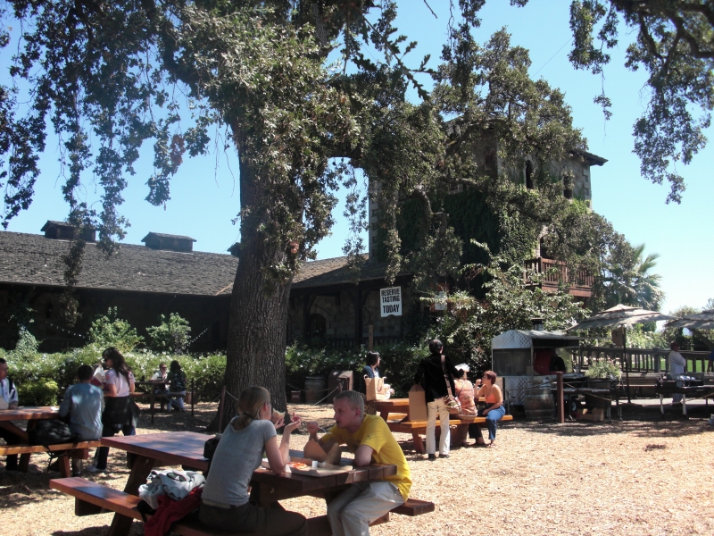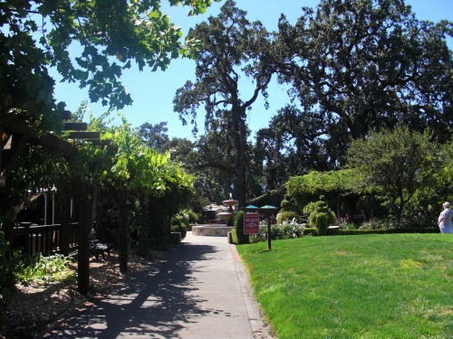 ジンファンデルという葡萄の木に囲まれた小道があったり、大きな木々も伸び伸びとしていて、とても気持ちの良い空間です。早くこの広場でピクニックをしたくなりますが、その前にまずは、ワインや食べ物を物色しに「Marketplace = 市場」と呼ばれるショップに行きましょう♪