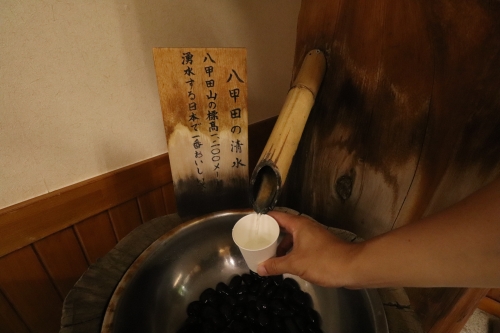 デザートには蕎麦蜜がついた蕎麦プリンがおすすめ。また店内では無料で、八甲田山の標高1,200メートル地点から湧き出る清水を頂くこともできます。スッキリとしてとても美味しいお水ですよ。