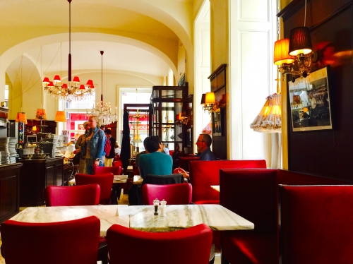 そんな人気店でのカフェタイムは夜がベスト。深夜0時まで営業しており、ディナー後の時間帯なら人が少なく並ばずに入店することができます。ザッハトルテは、6.50ユーロ(約855円)と少しお高め。さすが5つ星ホテルのカフェです。赤を基調とした店内は、まるでお城の中にいるかのような気分になります。