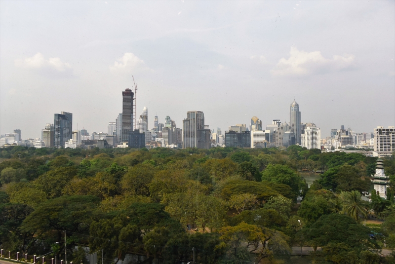 ホテルの向かい側には、「ルンピニー公園」というとても大きな公園があります。とてもスタイリッシュなロビーですが、一面の大きな窓からは公園の緑を眺めることができ、癒されます。