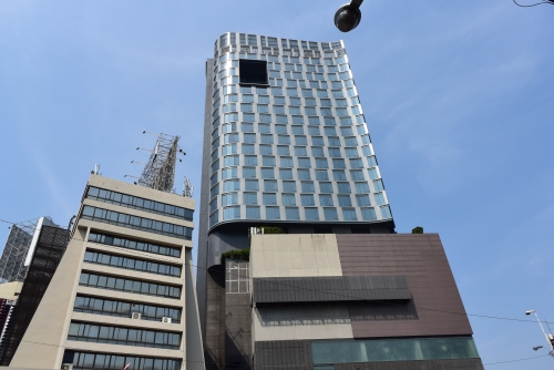 「ソフィテルSOバンコク」は、バンコク市内を走るBTSのサラ・デーン駅から徒歩で約15分、地下鉄のMRTルンピニー駅から徒歩で約5分の所にあります。柔らかな曲線に四角い穴が空いたビルが目印です。