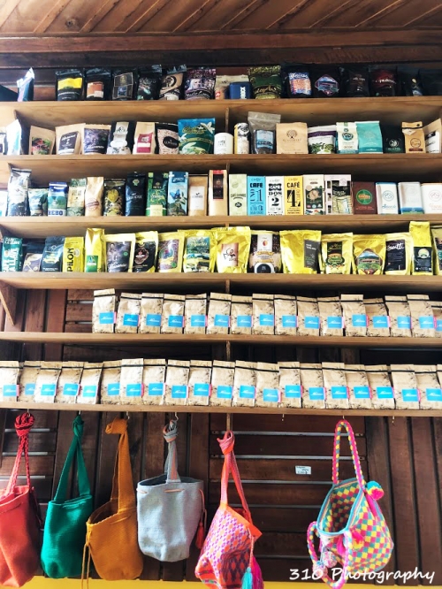このカフェの内装は地元のアーティストが手掛けており、自然豊かなコロンビアが生み出す多様で豊かな植物を利用しています。スペイン統治時代のなごりを残す伝統的でカラフルなペイント手法も取り入れて、素晴らしいデザインと雰囲気のカフェです。