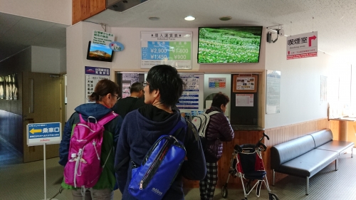 チケット売り場でまず運行状況や気象情報をチェックしてからロープウェイに乗車しましょう。チケット売り場ではクレジットカードは使えないのでご注意ください。