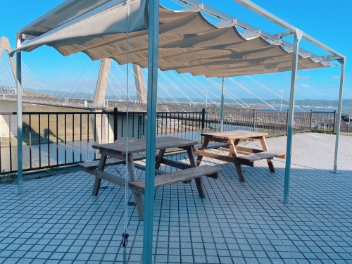 施設外側には、展望テラスがあり休憩できるのはもちろんのこと、内灘大橋を見ることができますよ。