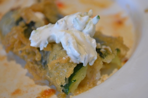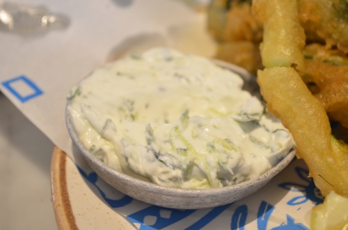 ズッキーニやナスのフライはイスラエルにもよくあるのですが、「Greco」ではヨーグルトで作られたギリシャのディップソースのザジキ(Tzatziki)と一緒に食べます。