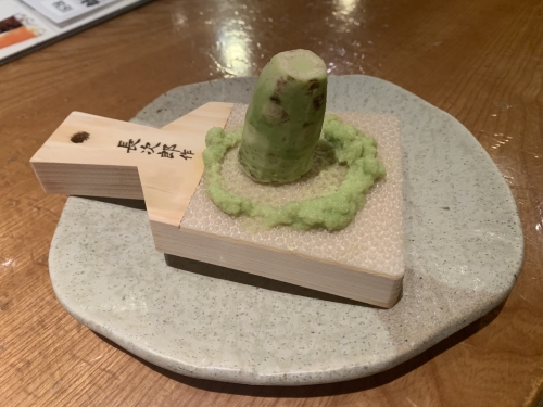 お次は季節のお造り盛り合せ。山葵は自分ですりおろします。