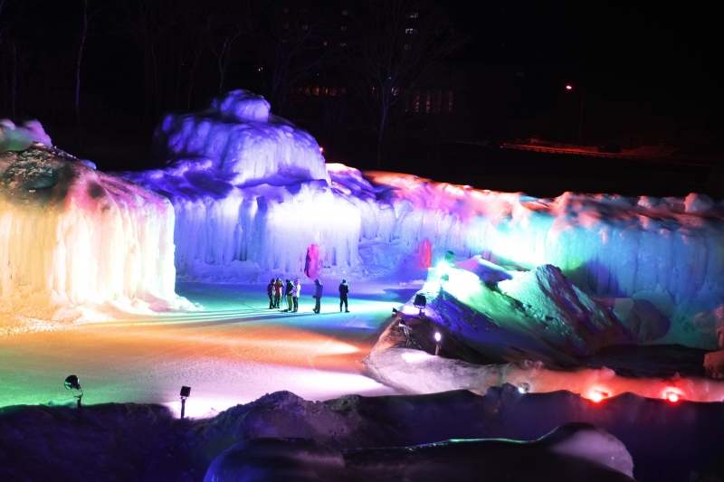 近年ではライトアップのみならず、雪像をスクリーンにしたプロジェクションマッピングを導入することにより、音と映像による幻想的な演出が人気を集めています。