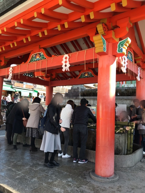 まずは京都駅からJR奈良線にのり、稲荷駅で下車しましょう(乗車時間5分)。駅を降りたらすぐに、伏見稲荷大社の入り口となっています。まずは、手水舎で手や口を清めてからお参りしましょう。