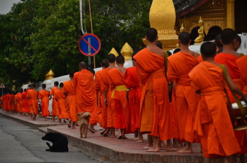 ルアンパバーンでは街の各所に寺院があり、托鉢は寺院の周辺で行われています。観光地にもなっているような規模の大きい寺院周りには信者の方や観光客が集まり「托鉢渋滞」ができるほどです。
