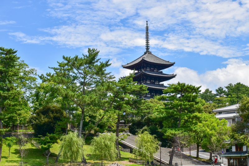 高さは50mあり、全国の古塔の中でも2番目に高く、国宝にも指定されています。古都奈良を象徴する建物です。