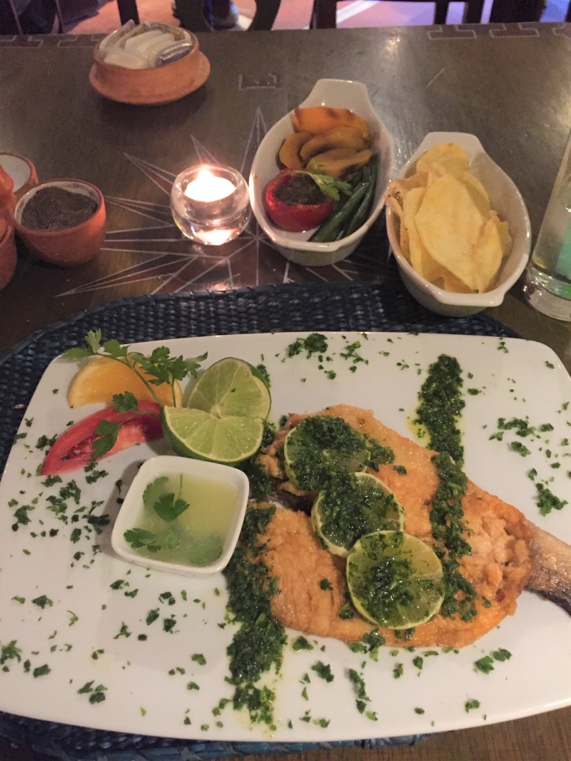 メインはニジマスのムニエル。デザートは、自家製プディングとアイス添えを選びました。どれも絶品でびっくりします。ぜひ、マチュピチュ遺跡に訪れた夜は、絶品レストランで乾杯をされてはいかがでしょうか。