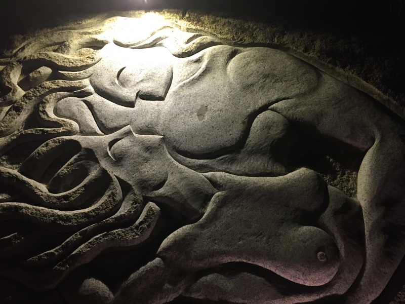 男女を描いた彫刻です。顔の表情や曲線美が、他の彫刻と少しタイプが異なる部分も興味深いです。