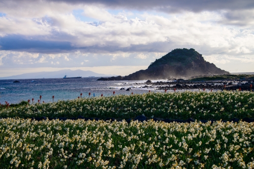 インスタ映えするハートのベンチも話題!冬には可憐な水仙が咲き誇ります