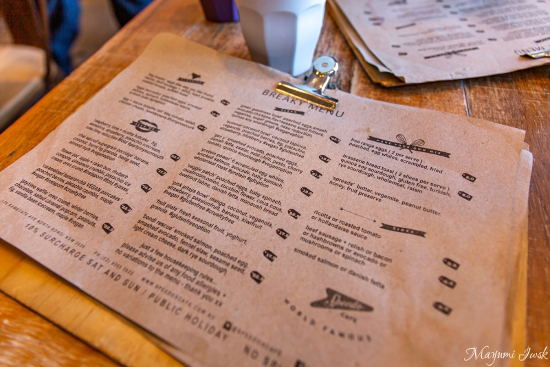 インスタで人気のカフェというだけあって、メニューには「#(ハッシュタグ)」が。オーストラリアでは定番の#glutenfree(グルテンフリー)や#vegan(ヴィーガン)はもちろん、#yum(美味しい!)や#foodporn(飯テロ)などフード系インスタでお馴染みのハッシュタグが並びます。