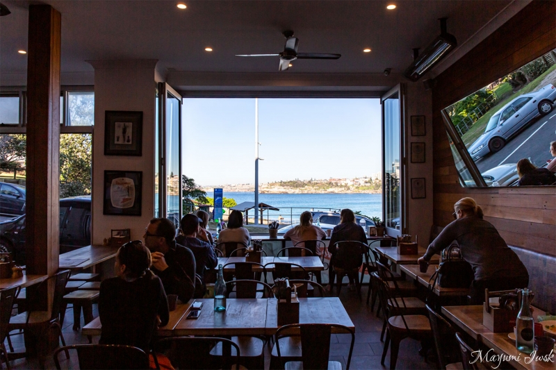 高台から海を望む、ボンダイの喧騒から少し離れたラスティックで素朴な旧店舗も素敵でしたが、新しい店舗は目の前はすぐ海というロケーション。ローカルに人気のアットホームな雰囲気だったお店が、ロケーションの良さも相まって早朝からたくさんの人で賑わっています。