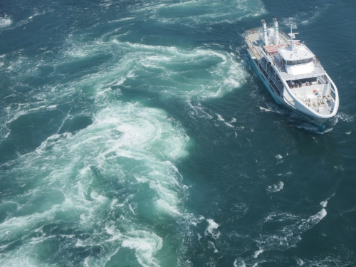運が良ければ渦潮の近くを通る船も見ることができて迫力満点!船が渦に巻き込まれてしまうのでは?とこちらの方が恐ろしくなる瞬間もあります。渦潮を真上から見たら、次は遊覧船に乗りたくなること間違いなしです。