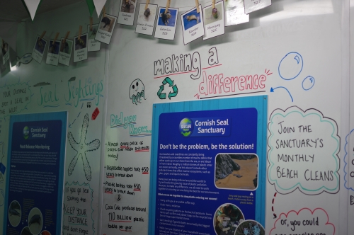 病院内はもちろん、「アザラシ救助センター(The Cornish Seal Sanctuary)」の施設のあちこちで、環境問題をわかりやすく教えてくれる掲示が行われています。私たち人間が便利に使い捨てているプラスチックが、いかに環境や野生動物たちに悪影響を及ぼしているのか、知るべき現実や環境問題をわかりやすく学ぶことができます。