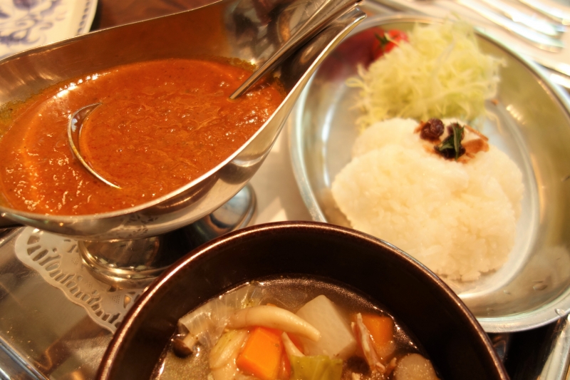 カレーは、玉ねぎ、人参、セロリをすべてすりおろし、10種類以上のスパイスで仕上げられています。スパイシーでプリプリの海老が嬉しいカレーです。