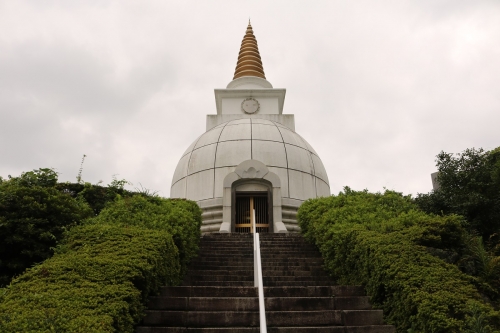 聖なる森に広がる日本庭園には、京都御所からの移築とされる聖門(ひじりもん)や、国の重要文化財である妙見菩薩像や聖観世音菩薩像が祀られているほか、パキスタン産の大理石で作られた釈迦如来殿があります。この釈迦如来殿には、仏教の開祖「釈迦」の骨(仏舎利)と髪の毛(聖髪)が安置されており、世界的にも貴重なパワースポットとなっています。