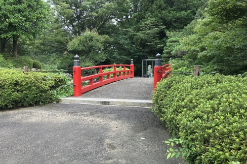 高台には空見の丘と呼ばれるエリアがあり、見晴台からは新宿や東京タワー、スカイツリーなどを一望する事ができます。見晴台には赤い橋(眺め橋)があり、下には鯉が悠々と泳ぐ池(眺め池)が広がっています。また、彩りの小路へと続くせせらぎを眺めながら散策する事もできます。そして見晴台の手前にはテーブルと椅子があるので、こちらでお弁当を広げて食べる事もできます。