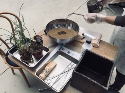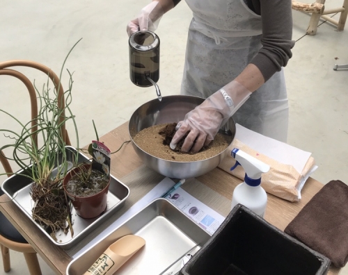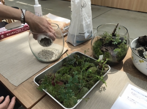 筆者の訪問時は、睡蓮のビオトープ(参加費2,500円)と、苔テラリウム(参加費2,00円)の内容で開催されていました。筆者は午前に睡蓮のビオトープに参加し、午後にスタッフに相談して、少し大きめのテラリウム作成に変更(参加費4,500円)して参加しました。