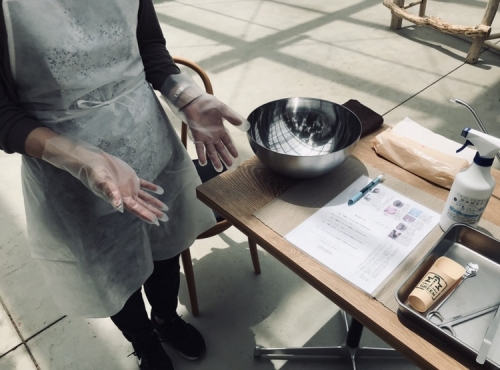 席に着くと、あらかじめワークショップの流れが書かれた説明書と手袋などが用意されています。まずは目を通しましょう。細かい説明はスタッフがしてくれるので、安心して下さい!