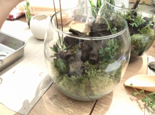 スタッフの説明を聞きながら、好きな様に草や流木を配置しましょう。筆者は悩みに悩み、気づいたら2時間半かかっていました。売り物の様には出来ませんでしたが、世界に1つのオリジナルの作品が出来て大満足です!