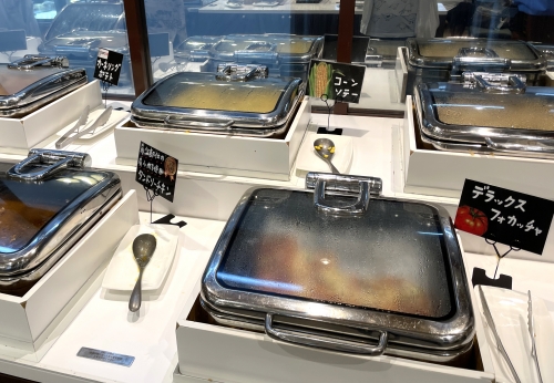 スープも2種用意。クリーミーな「コーンスープ」と、玉ねぎたっぷりの「オニオンスープ」がありました。