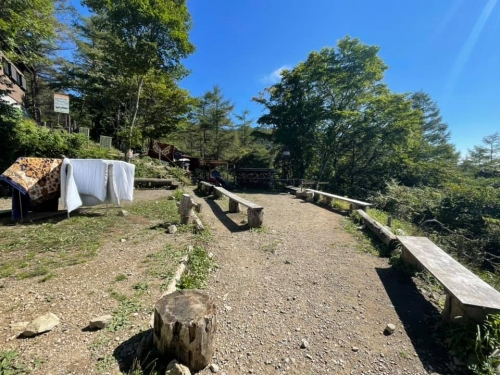 道標に従ってしばらく歩いて行くと、やがて宿泊可能な山小屋「七ツ石小屋」に到着します。