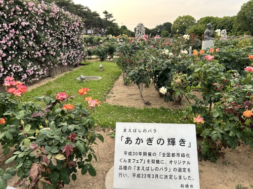 またモダンローズガーデンには、2008年に開催された「全国都市緑化ぐんまフェア」をきっかけに誕生した前橋市オリジナルブランドのバラ「あかぎの輝き」もみられます。