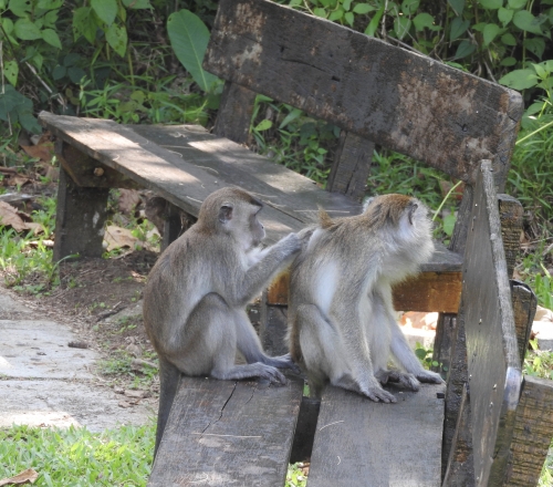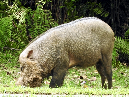 ヒゲイノシシやカニクイザル、リーフモンキーなどは公園本部事務所のあたりをウロウロしていています。保護されていることを知っているためか、人が近づいても逃げることもなく、ノンビリしています。いくら人に慣れているからといえども、あまりに近寄ったり目を合わせたりすると威嚇されることもありますから、注意しましょう。