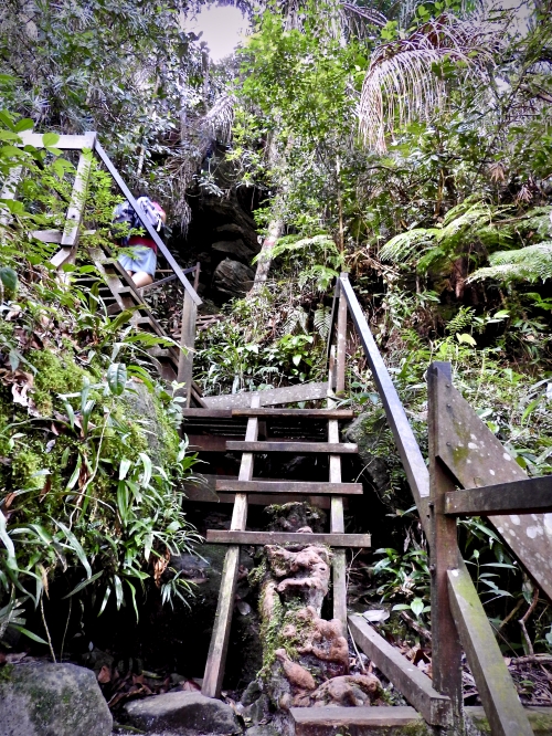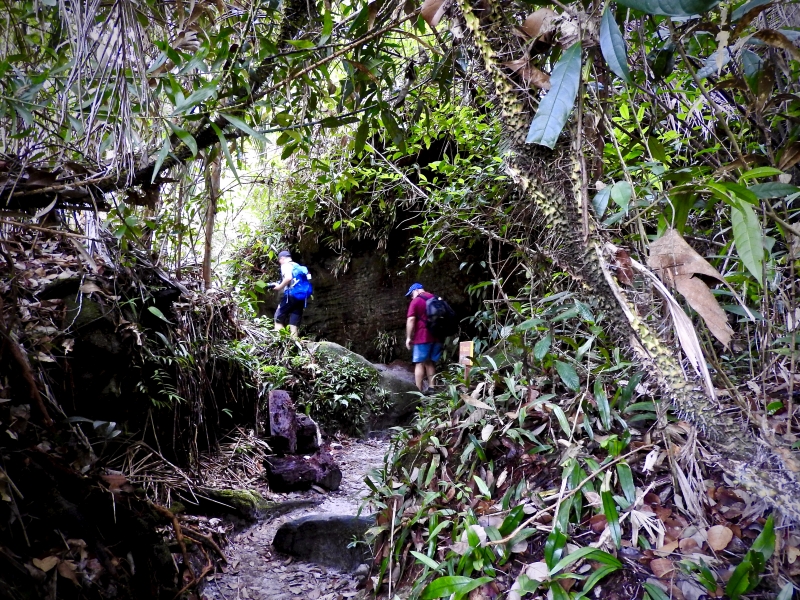 公園本部から少し歩いてジャングルの中に入っていきます。いかにも熱帯雨林、鬱蒼とした森の中を登っていきます。