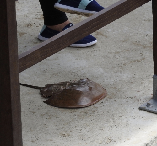 水辺の生き物、爬虫類、昆虫など、いろいろ観察できます。まさに生き物の宝庫です。カブトガニはガイドさんが海辺から持ってきて、みんなに見せてくれました。