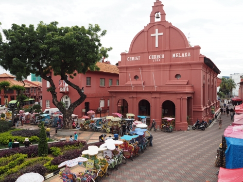 マラッカのシンボルになっているエリア。名前のとおりオランダ統治時代の1650年頃につくられた総督府や教会が、すべて赤茶色の壁で統一されています。これぞ異国!という雰囲気でカワイイですよね。ここはとにかく各国から来た観光客の写真スポットになっていて、常に人で溢れています。しっかり良い写真を撮るなら、ちょっと高い位置から見下ろすのがオススメです。そんな写真映えする賑やかな広場が、かつては東京の霞ヶ関のような政治の中心地だったことを考えると、時代の変遷を実感するのではないでしょうか。