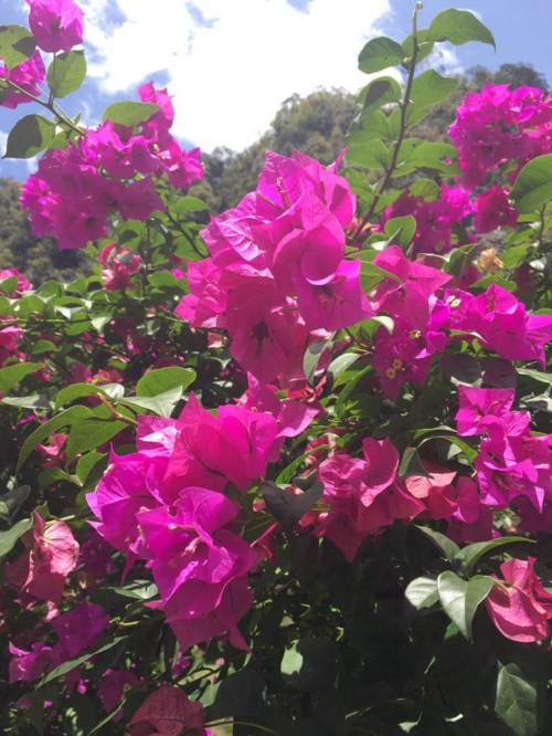 写真下のような、キレイなお花がたくさんあります。また、お庭には様々な種類の野生の鳥もいますよ。お散歩に疲れたら休憩する場所があるので、休憩しながら自然を満喫することができます。